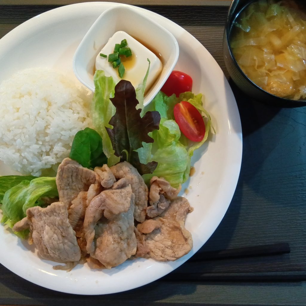 今日のランチメニューは、照りマヨポークソテー・サラダ・味噌汁でした!🐖