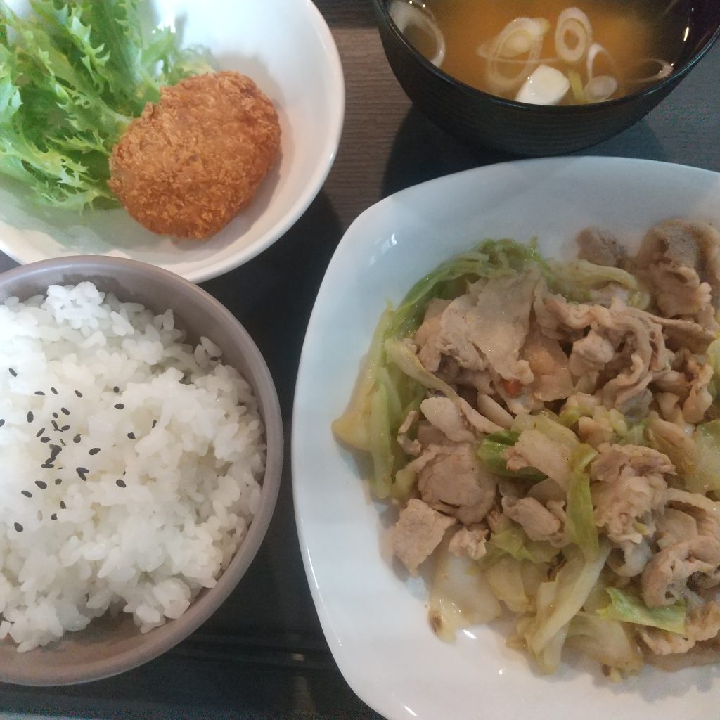 今日のランチメニューは、キャベツと豚肉のゴマ味噌炒め・味噌汁です!