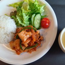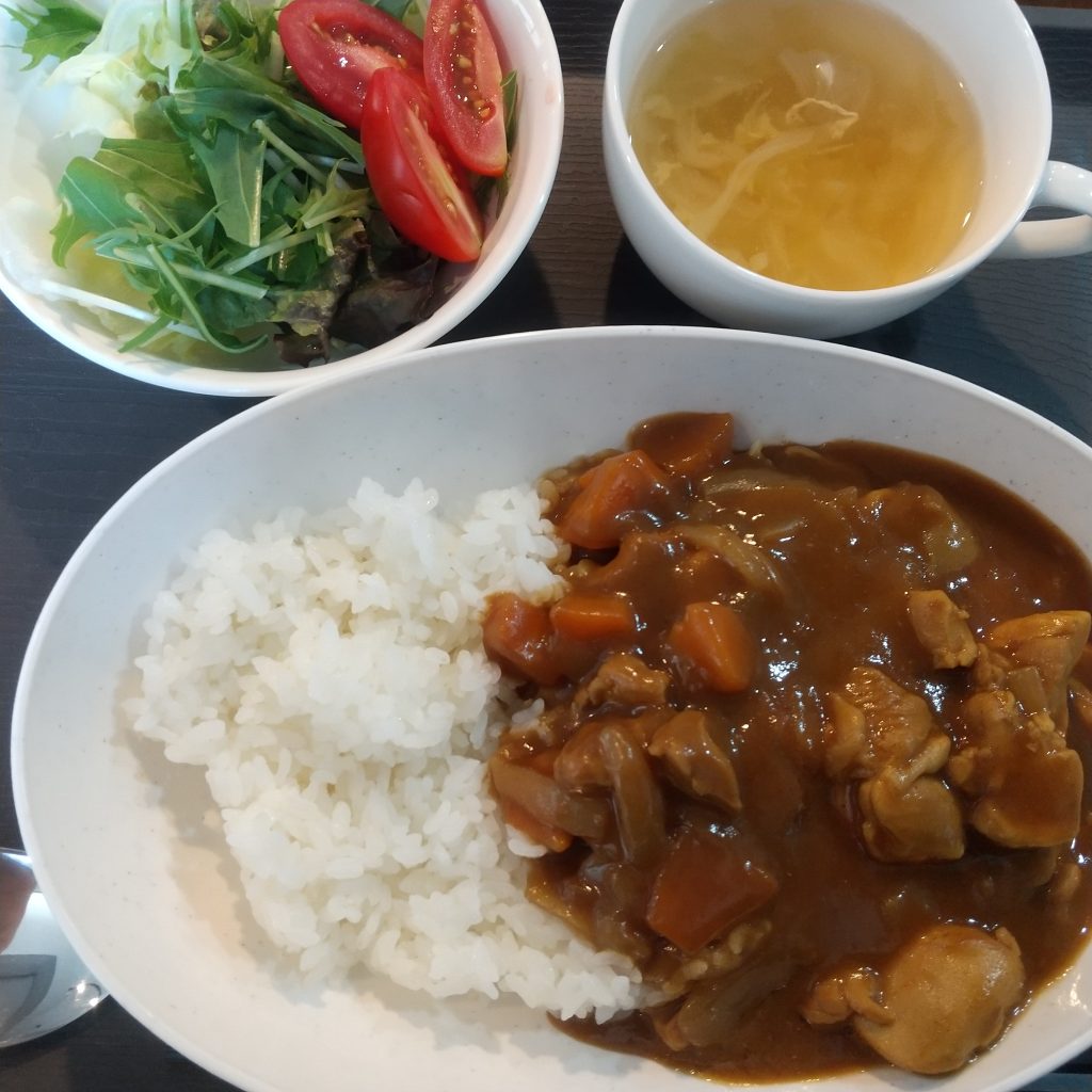 今日のランチメニューは、チキンカレー・サラダ・スープです!