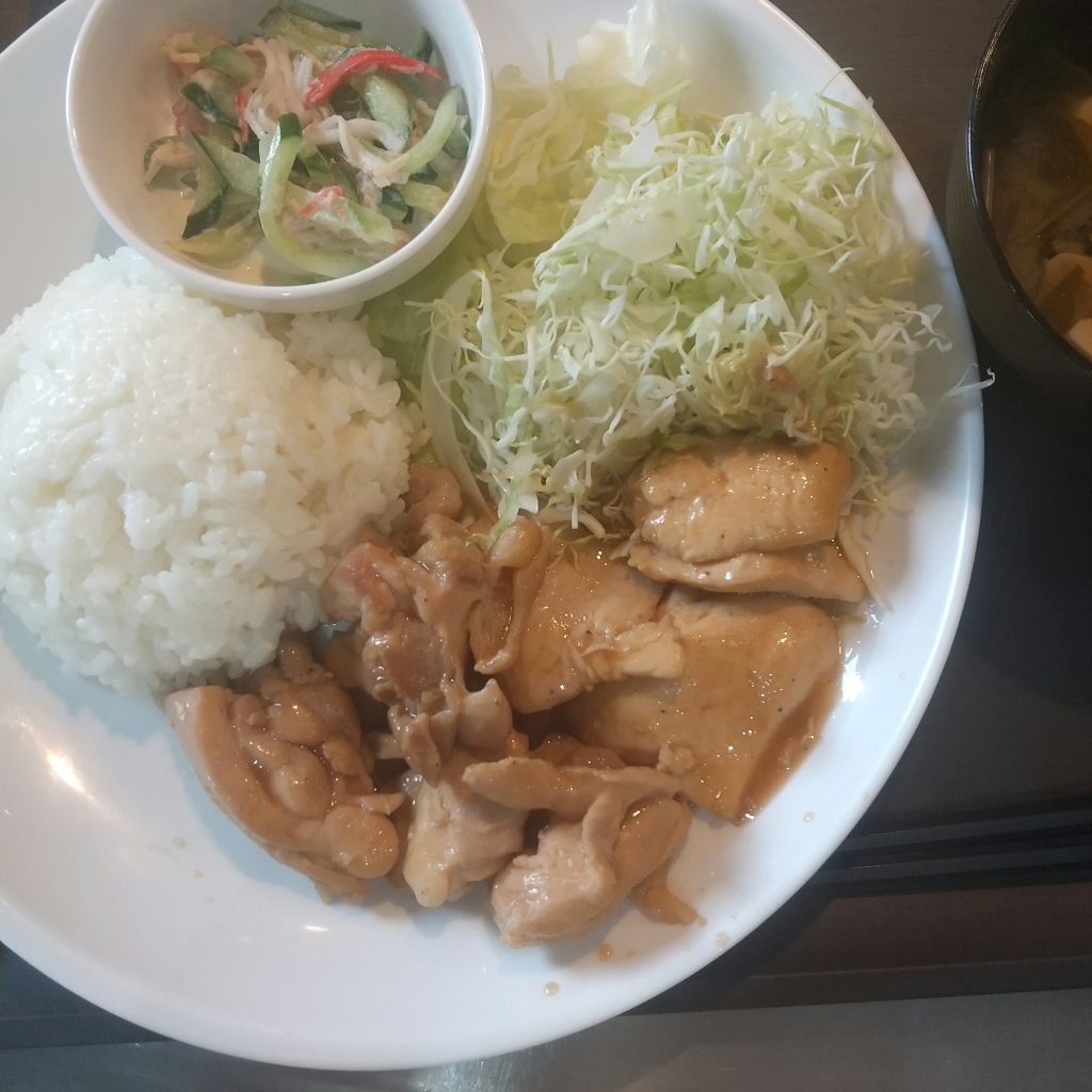 今日のランチメニューは、鶏肉のしょうが焼き・味噌汁です!