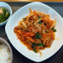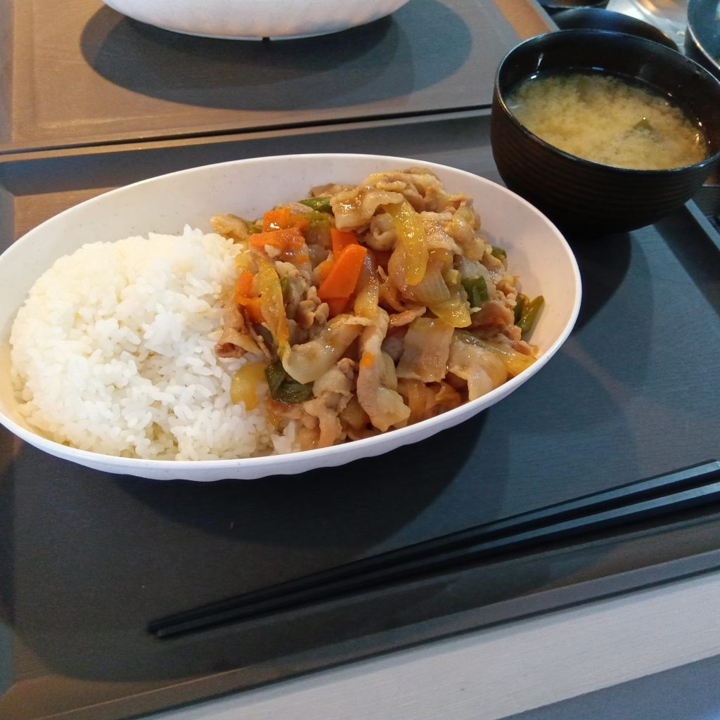 今日のランチメニューは、豚肉オイスター炒め・味噌汁です!