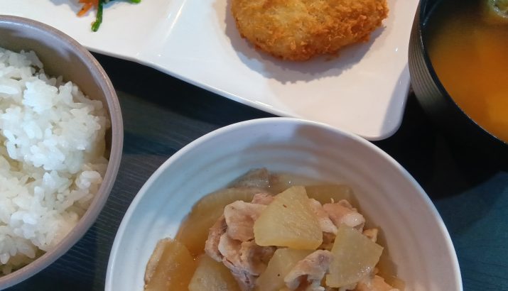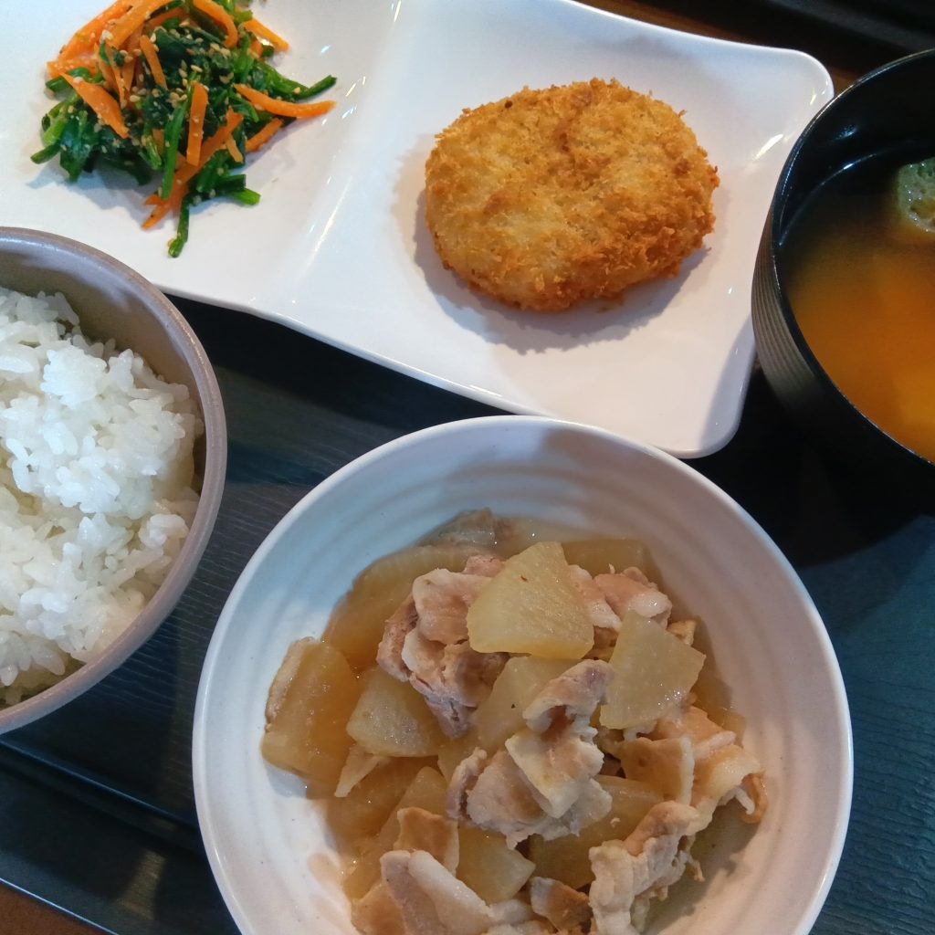 今日のランチメニューは、豚バラ大根・コロッケ・みそ汁です!