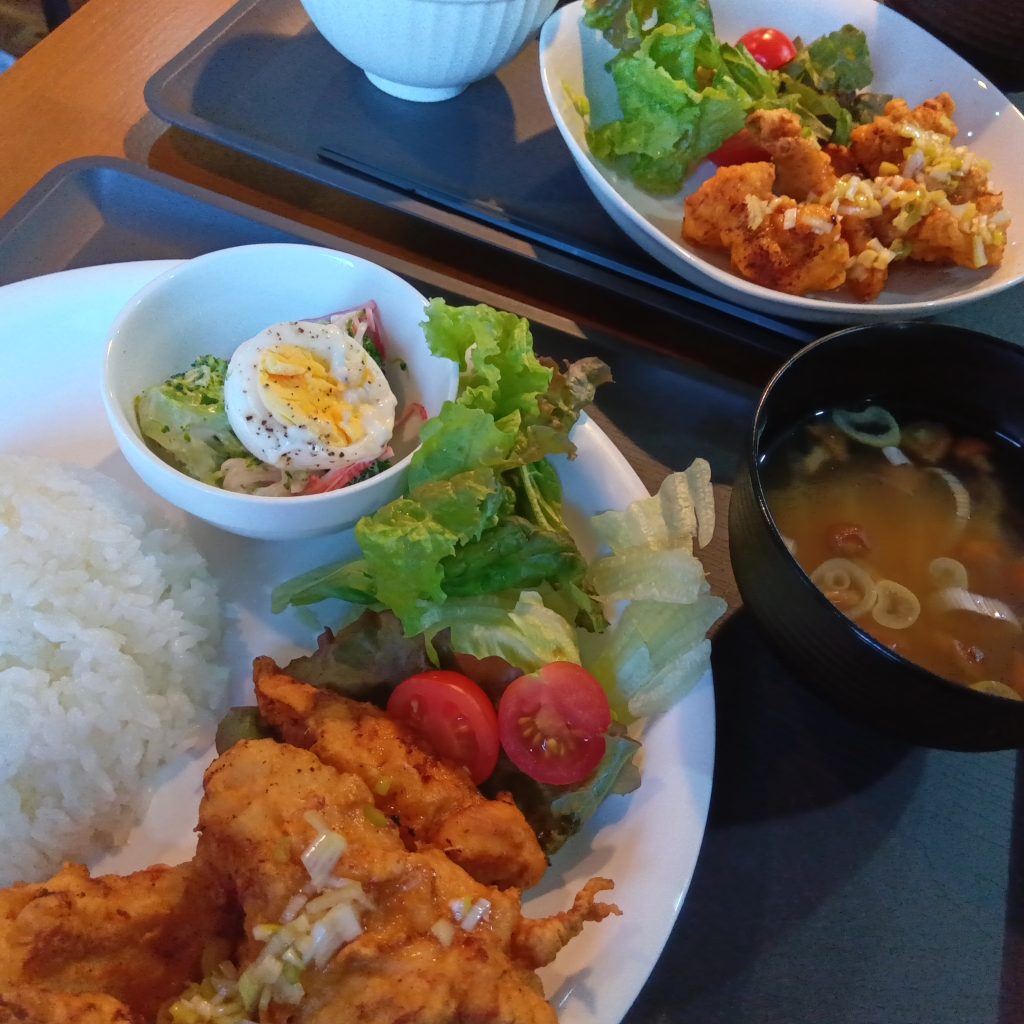 今日のランチメニューは、とりむね唐揚げ甘酢ねぎダレ・みそ汁です!
