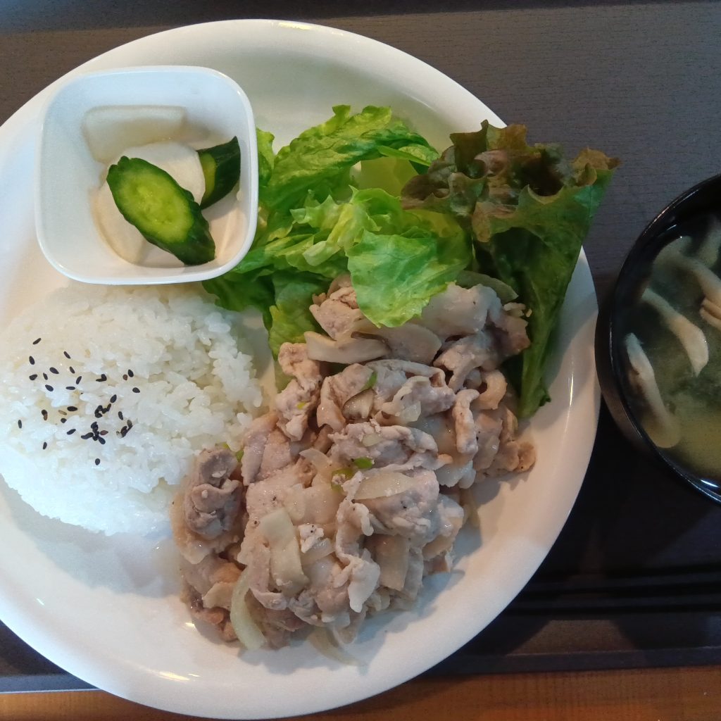 今日のランチメニューは、豚肉塩だれ炒め・みそ汁です!