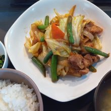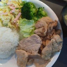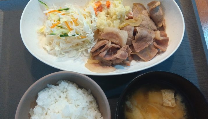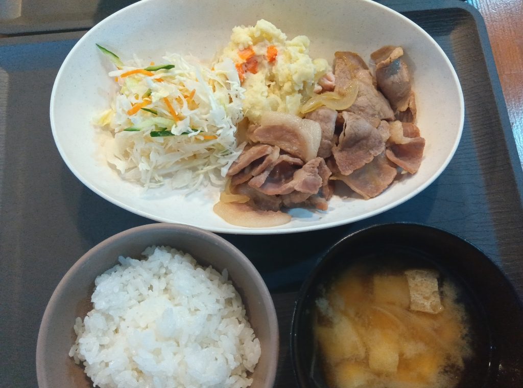 今日のランチメニューは豚しょうが焼き・ポテトサラダ・味噌汁です!