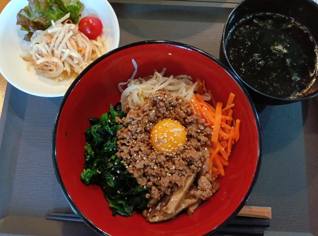 今日のランチメニューはビビンバ丼・大根とツナサラダ・ワカメスープです!