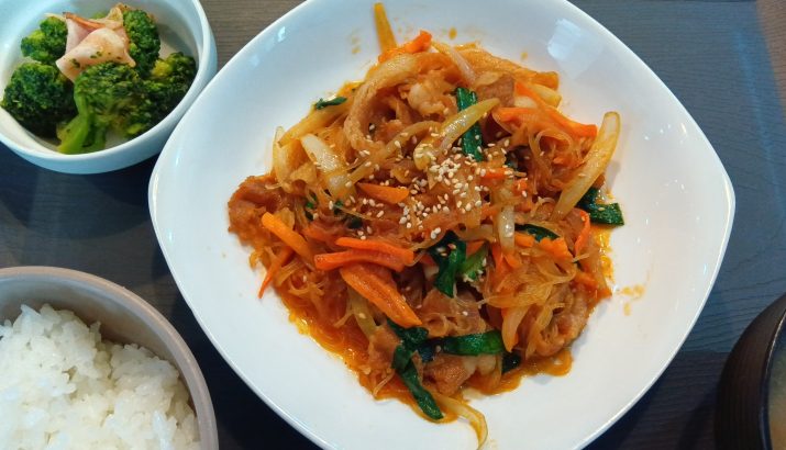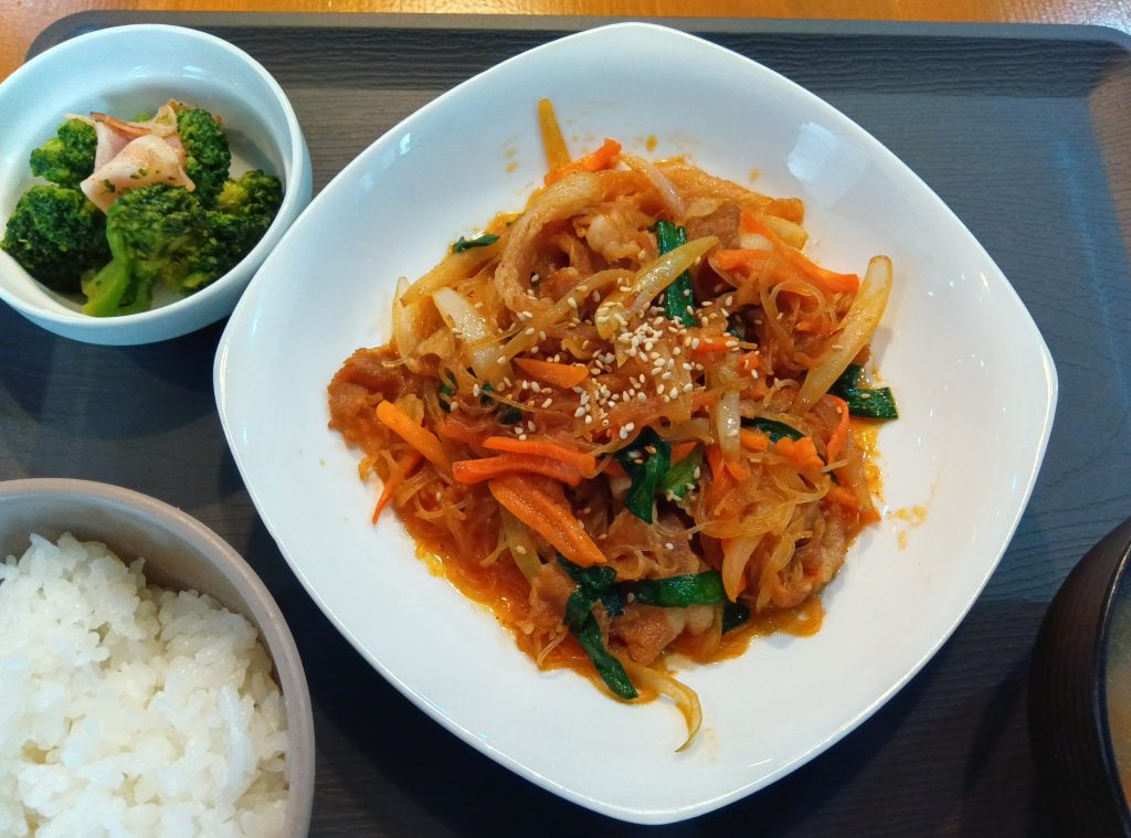 今日のランチメニューは豚プルコギ・ブロッコリーとベーコン炒め・スープです!