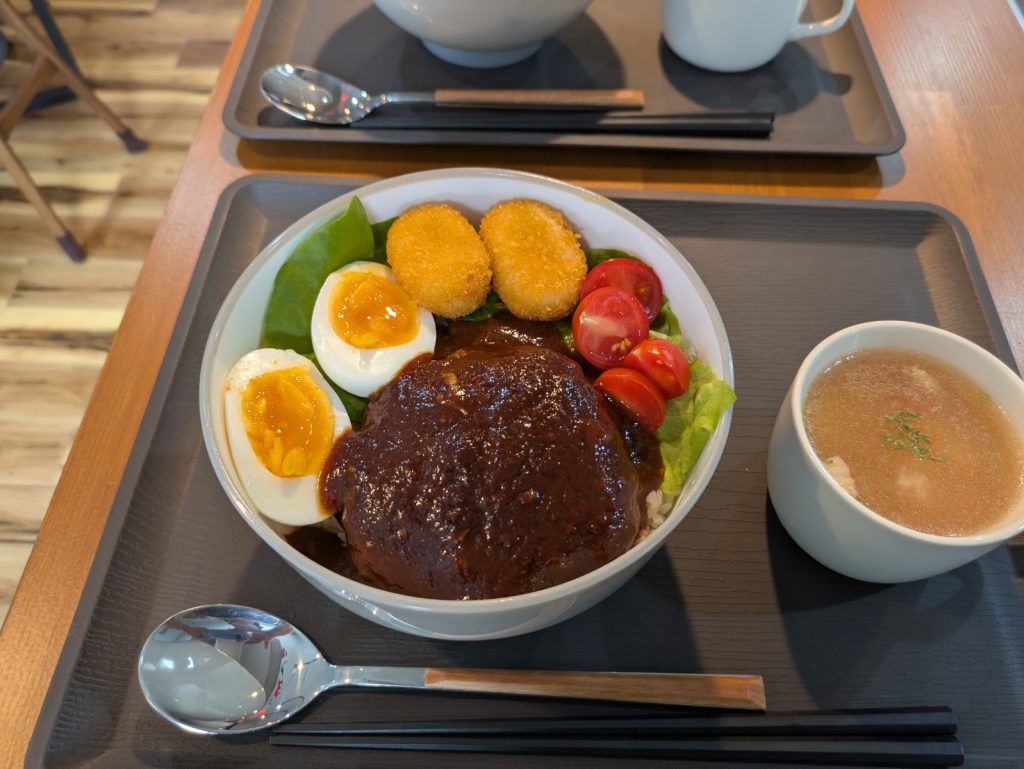 ロコモコ丼と具沢山コンソメスープでした🥗