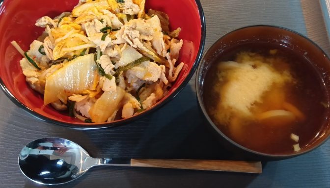 今日のランチメニューは、肉野菜炒め・コロッケ・味噌汁です!