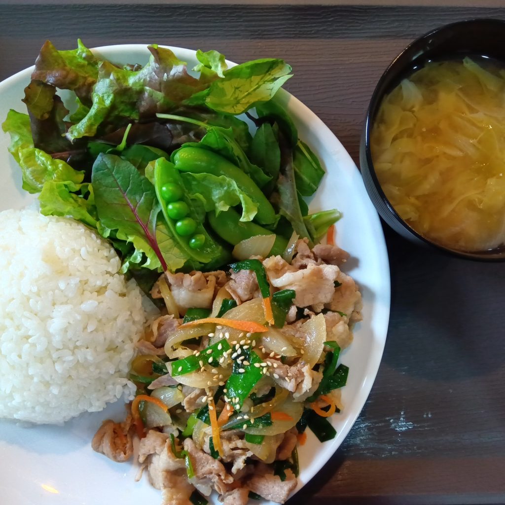 今日のランチメニューは、豚バラ肉のプルコギ風・サラダ・味噌汁です!