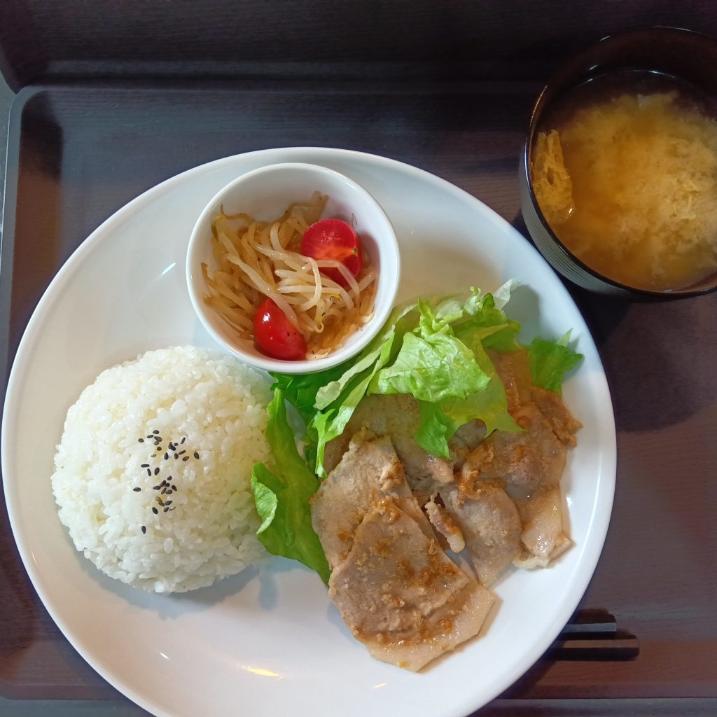 今日のランチメニューは、豚ロース醤油糀焼き・もやしとトマトのナムル・味噌汁です!