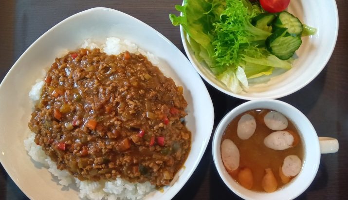 今日のランチメニューは、キーマカレー・サラダ・スープです!